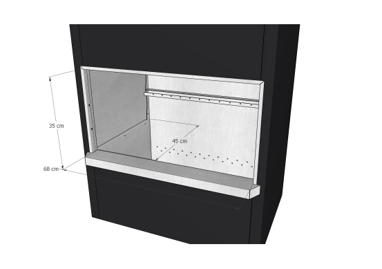 Largo: 45 cm; Ancho: 68 cm; Altura 35 cm
