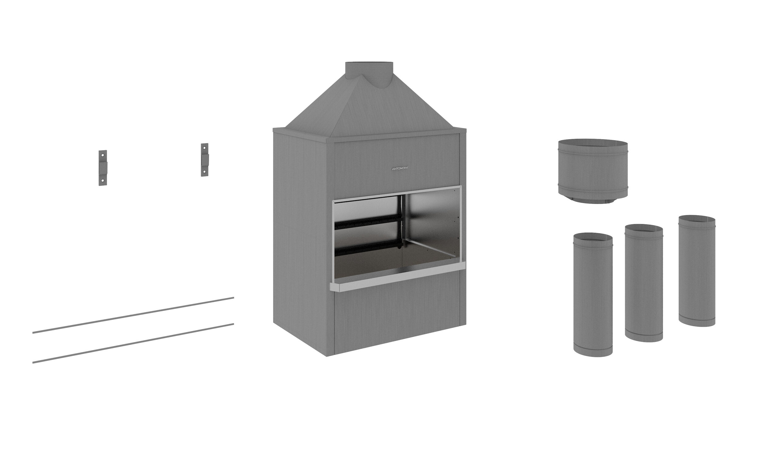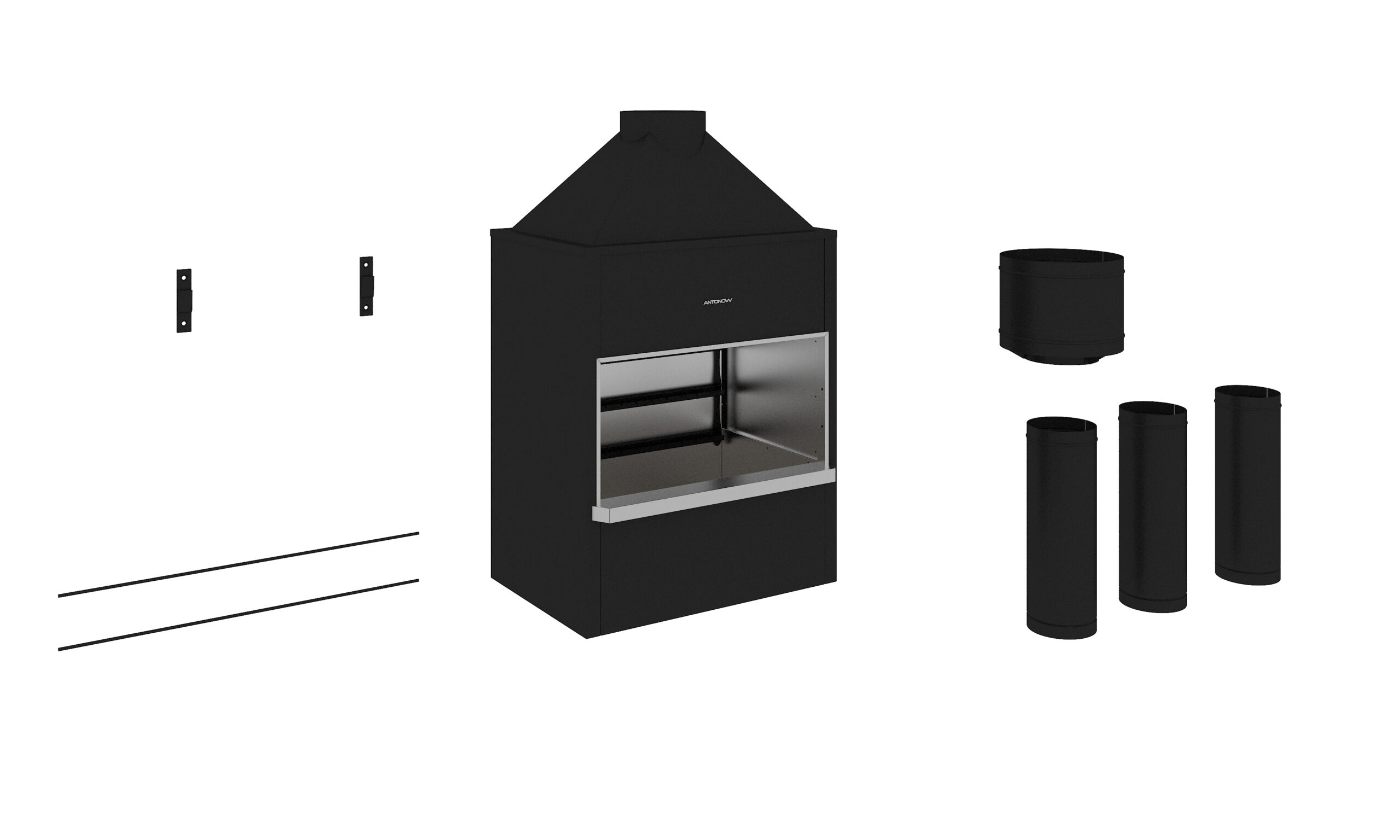 Fabricada 100% en acero inoxidable cepillado o acero al carbono con pintura de alta temperatura, la Línea Aera es duradera y resistente al calor del fuego y las brasas, además cuenta con base en ladrillo refractario.