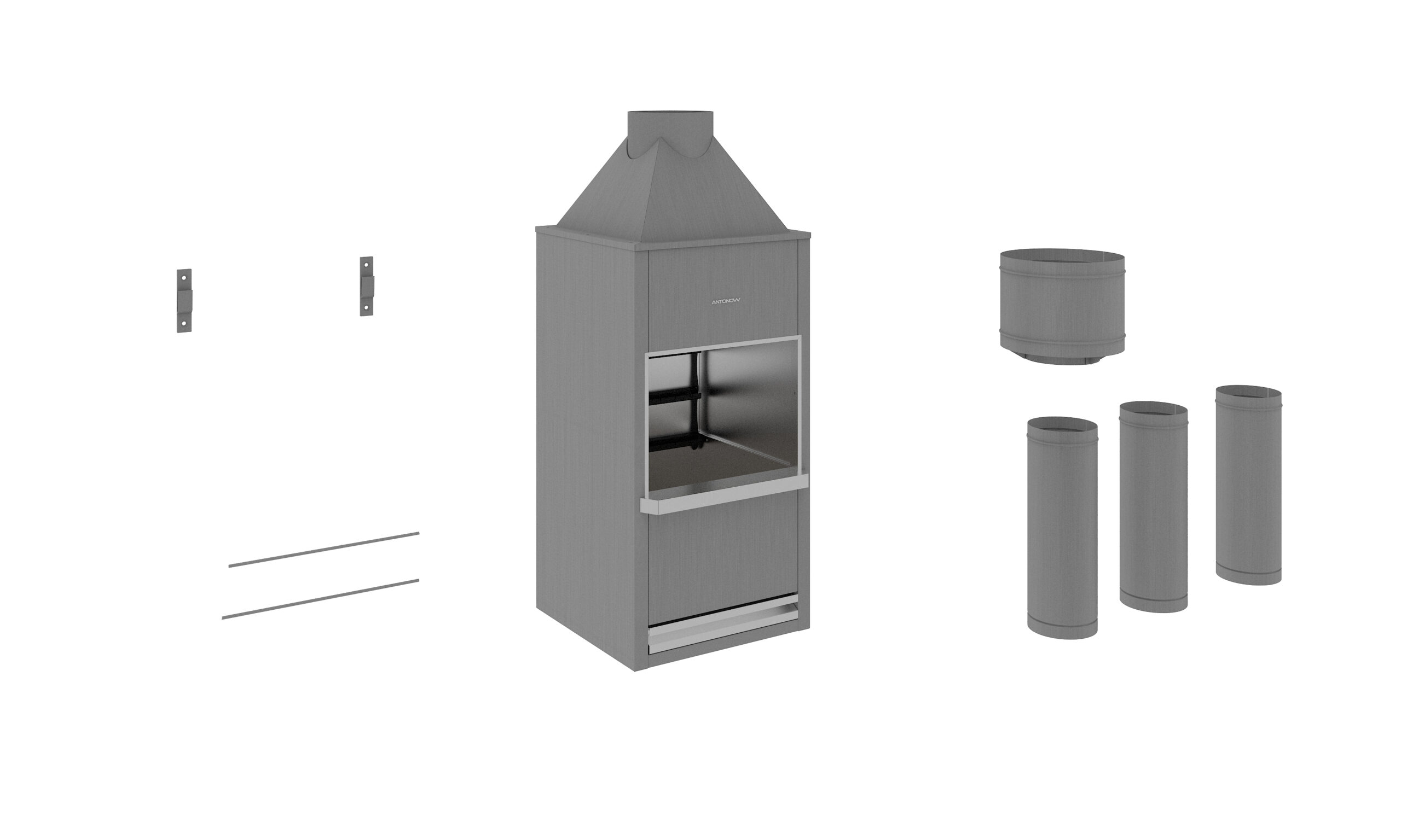 Fabricada 100% en acero inoxidable cepillado o acero al carbono con pintura de alta temperatura, la Línea Aera es duradera y resistente al calor del fuego y las brasas, además cuenta con base en ladrillo refractario y cenicero para una fácil limpieza.