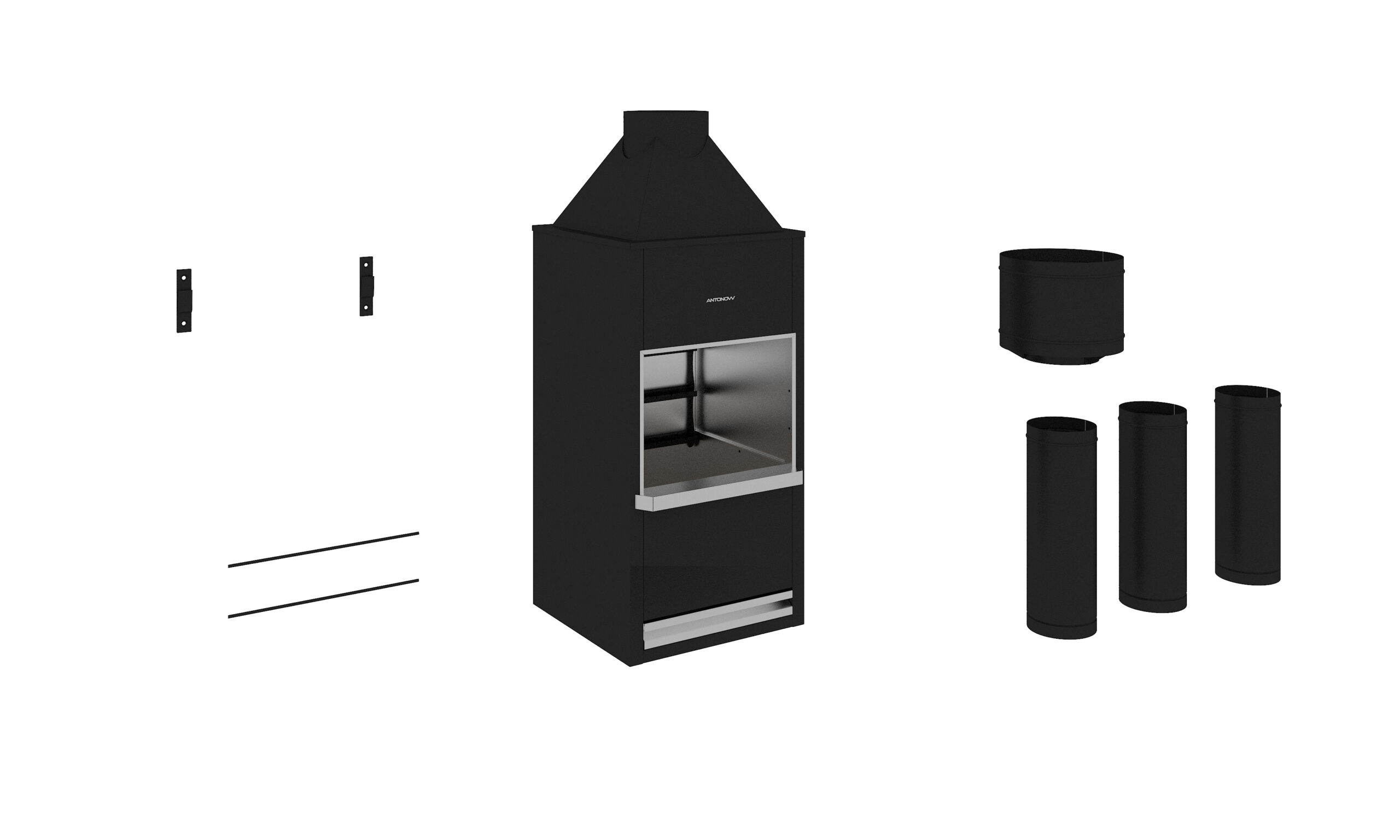 Extremadamente robusto y versátil; Fabricado con materiales de primera; Pintura especial para alta temperatura y anti-desplazamiento; Bandeja extraíble de acero inoxidable especial para alta temperatura; Fácil de instalar; Durabilidad; Doble combustión; Protección para no calentar los lados; con cenicero