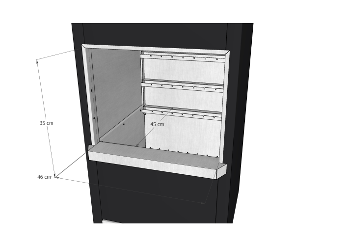 Largo: 45 cm; Ancho: 46 cm; Altura 35 cm