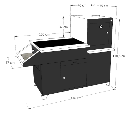 Cocina a leña para quien desea un horno con mucho espacio, un quemador para grandes piezas de leña y una vitrocerámica para calentar más rápido, para colocar los alimentos directamente sobre la plancha, que no requiere el uso de papel de lija.