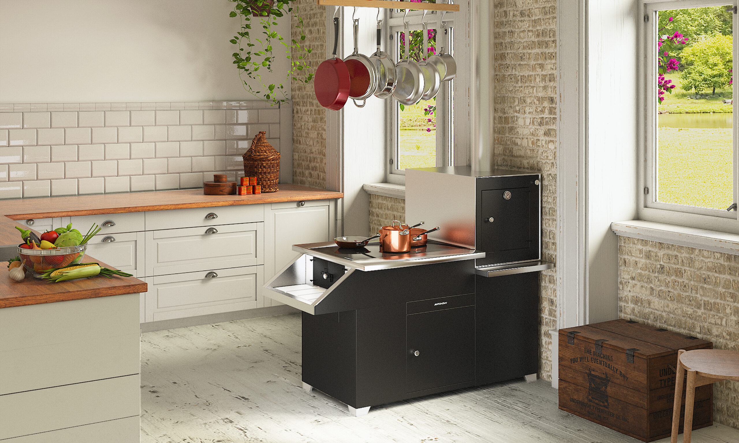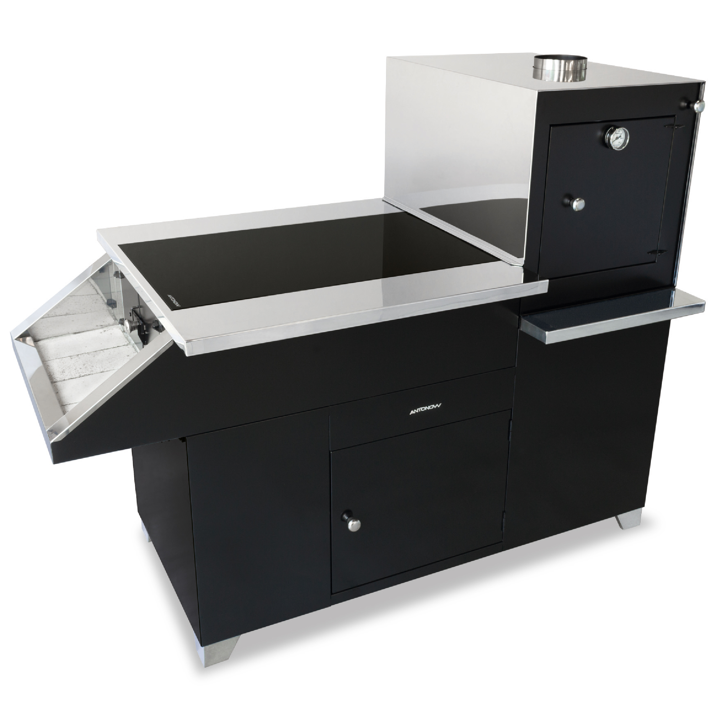 Cocina a leña Brasil / Plancha vitroceramica / Negro con acero inoxidable / Salida Derecha