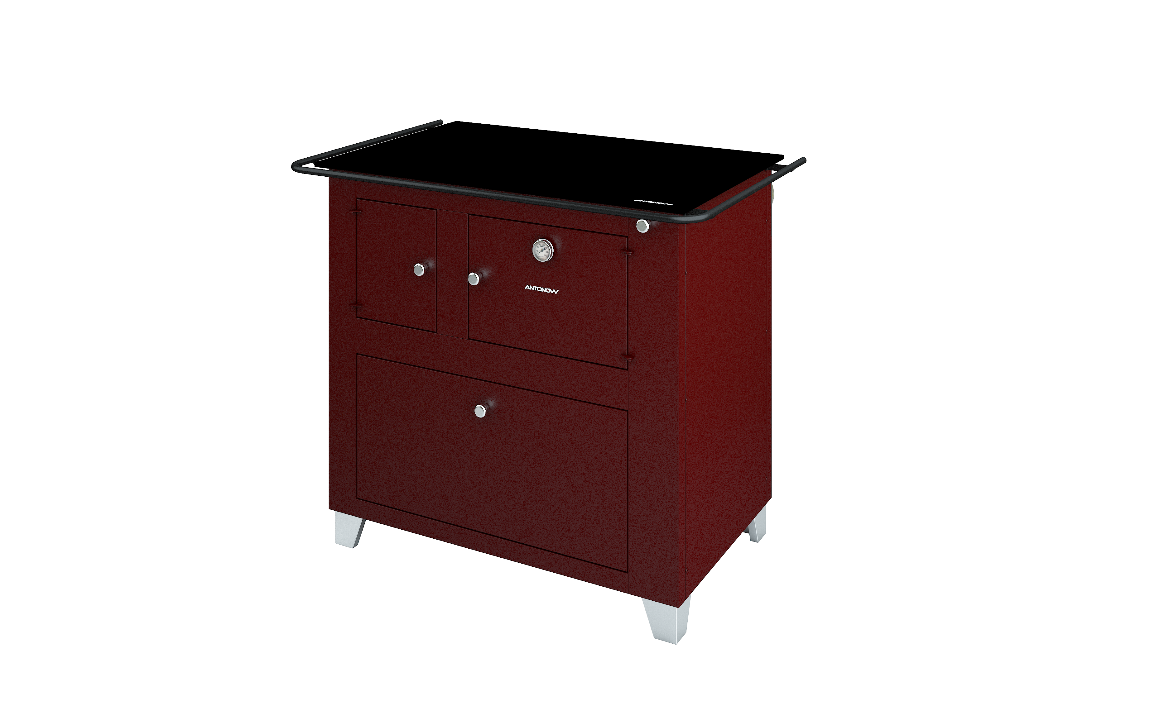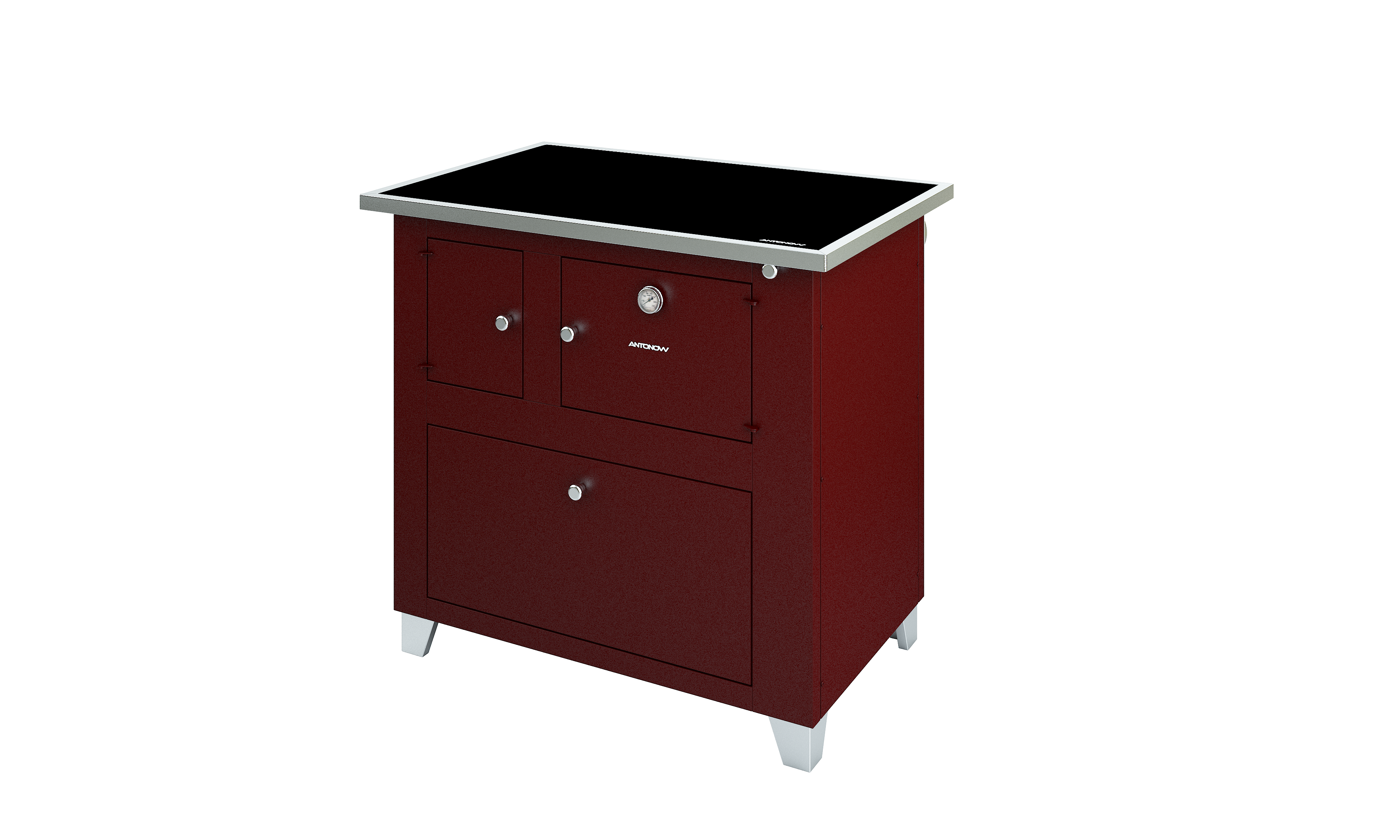 Cocina a leña Mônaco Cocina a leña Mônaco / Plancha Vitroceramica / Rojo con Acero Inoxidable / Salida Posterior Izquierda / Varilla / Triple Combustión Detalles Comprar