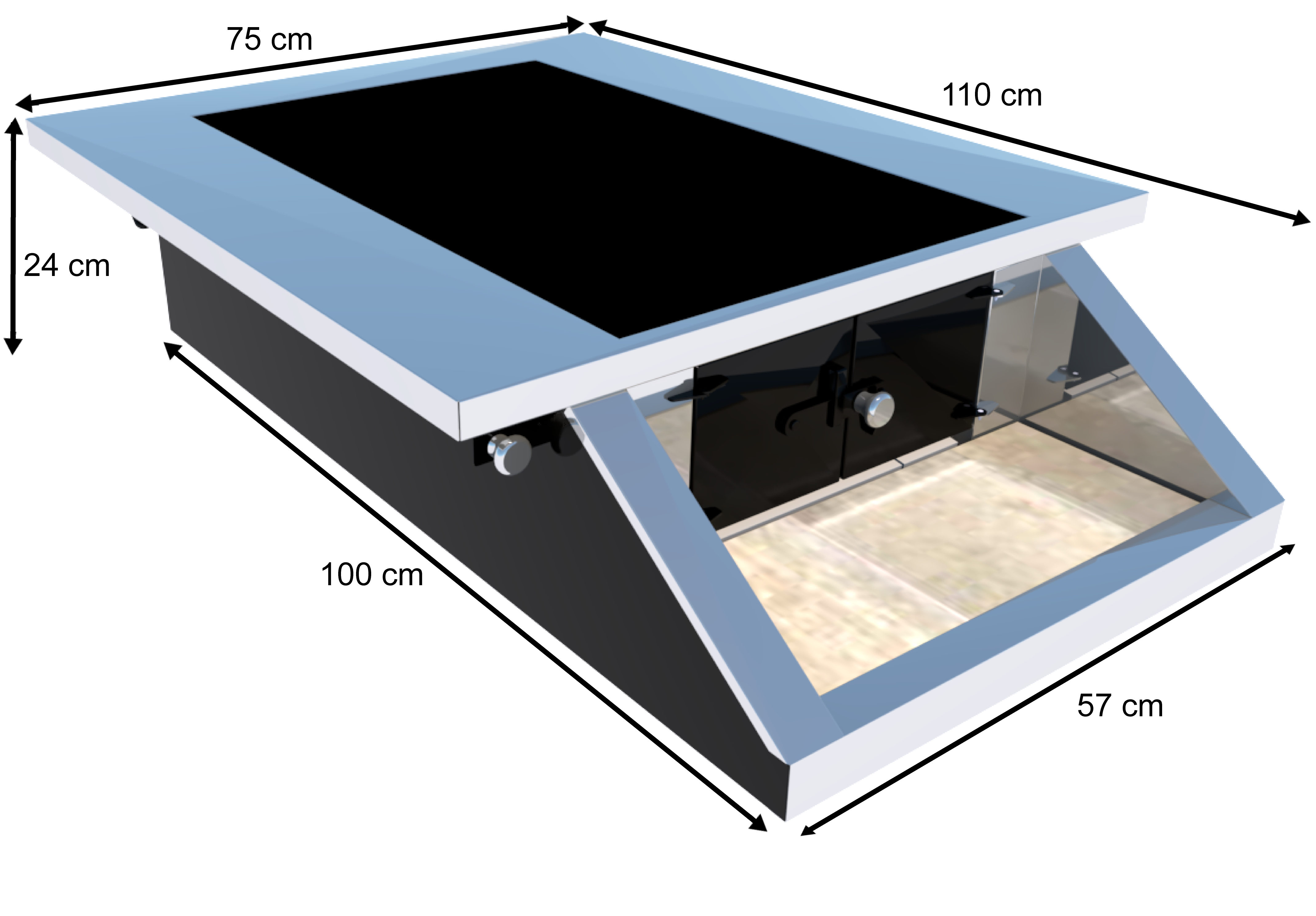 Ancho: 75 cm; Altura: 24 cm; Largo: 110 cm